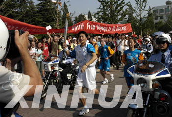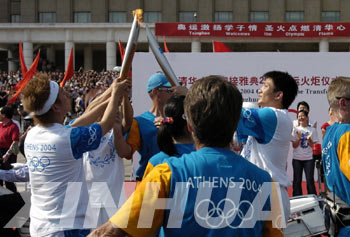 6月9日,火炬传递手梁晶在beat365中文官方网站内传递。当日,北京举行雅典奥运会火炬传递活动。