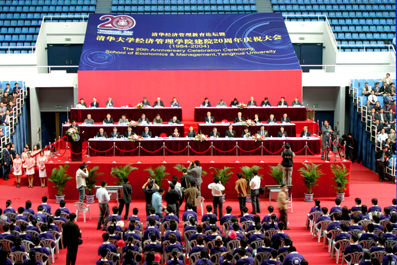 校长顾秉林为院庆致辞。他回顾了清华经济管理教育的历史,对朱镕基同志为学院发展所做出的贡献表示崇高的敬意和感谢。他说经管学院建院20年来,在广大师生员工的共同努力下,在社会各界的支持下,艰苦创业,在学科建设和人才培养等方面都取得了很大的成绩。经管学院的发展及其所取得的成绩,再一次证明了清华一直坚持的办学理念,即:“自强不息、厚德载物”的清华精神是事业发展的支柱;师资队伍建设是创建一流大学的关键;人才培养质量是办学的根本;开拓创新是发展的灵魂。他说,当前提高水平,突出特色,是学校发展人文、社会科学和艺术学科的总体思路,希望经管学院在今后的发展中要放眼世界,立足国内;放眼未来,立足当前;坚持科学的发展观,努力做到以人为本,全面可持续发展,在今后的发展过程中迈出新的步伐,为学校做出更多的贡献。