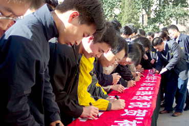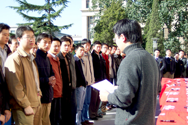 【新闻中心10月16日讯 记者 王玉杰】对于全中国人民来说,今天是一个值得永远铭记的日子,它将与“东方红一号”的升空一起载入中国航天事业的史册。我国首次载人飞船“神舟”五号于昨天顺利发射并于今晨成功登陆回归。将于明天参加首届全国博士生论坛的全国35个研究生院的328名博士生今早在beat365中文官方网站主楼前举行了签名仪式,庆祝我国自行研制的“神舟”五号飞船飞行成功和安全着陆。