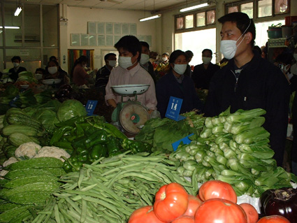 在两地,我校副总务长、清华园街道党委书记陈克金首先对于农贸市场售货人员的辛勤劳动表示感谢,同时也提出了明确要求。他说,“我们一定要有不乱涨价、不挣这点小钱的意识,这是对老百姓负责,对国家负责,从长远来说也是对自己负责。除了明码标价之外,市场管理部门每天要公布最高限价。对私自涨价者要给予严肃处理。”他还希望广大售货员要发扬不怕辛苦、为老百姓服务的精神,在为人民服务的过程中谋取合理的利润。他特别提到,一定要严禁售卖假货,哄抬物价,否则,学校将进行严肃处理。另外,他还叮嘱大家一定要注意卫生,共同努力取得防范“非典”工作的胜利。