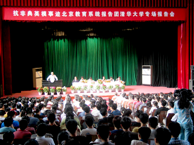 【新闻中心讯 记者 周襄楠 摄影 郭海军】他们曾经在非典肆虐之际冲锋在前,他们曾经在感染SARS之后越战越勇,他们曾经在非典的前线背着亲人和战友的遗像继续战斗——9月9日下午的大礼堂,抗非斗争英模事迹北京教育系统报告团为清华师生带来了首场专题报告会。