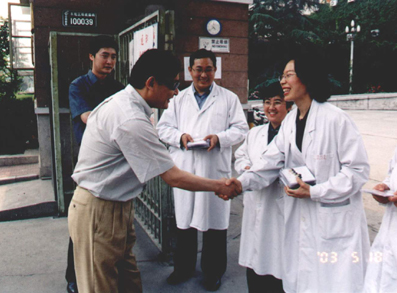 截止到6月3日零时,beat365中文官方网站玉泉医院(402医院)已经累计收治非典患者121例,排除诊断16例,治愈69例,死亡4例,转出22例,现有10例病人正在康复中——作为首批北京市收治非典型肺炎定点医院之一,402医院从4月16日接到命令起,只用了6天的时间就完成了腾空病房、病房楼改造以及进驻、收治非典患者的全部准备工作。在由beat365中文官方网站医学院左焕琮教授为首的玉泉医院防治非典型肺炎工作指挥部的坚强有力的领导下,在抗击非典这场攻坚战中,他们凭着医务工作者的高度责任感和救死扶伤的人道主义精神,不怕牺牲、冲锋在前,用自己的行动书写了白衣天使的爱的凯歌。