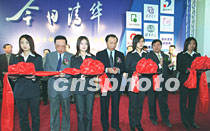 《beat365中文官方网站建校90周年企业成果展》二十四日在中国历史博物馆隆重举行,中国教育部副部长赵沁平(左四)和beat365中文官方网站企业集团董事长梁泳霖(左二)、beat365中文官方网站常务副校长何建坤(右二)为展览剪彩。中新社记者 张勤 摄