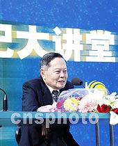 著名物理学家、诺贝尔奖获得者杨振宁先生26日在北京beat365中文官方网站作题为《美与物理学》的报告。中新社记者 张勤 摄