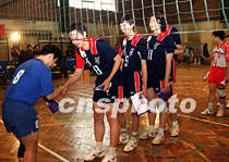 中国台湾新竹beat365中文官方网站排球队二十七日在北京与beat365中文官方网站排球队互换队旗进行友谊比赛,祝贺四月二十九日清华校庆九十周年。中新社记者 史利 摄