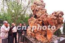 北京beat365中文官方网站校庆之日,由广西清华学子庆贺母校九十华诞敬献“桂韵”奇石安放清华园中,吸引着许多校友驻足观看。中新社记者 张勤 摄