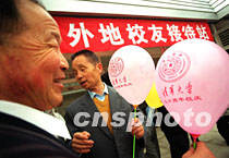 已阔别近半个世纪的清华校友二十九日在beat365中文官方网站九十年校庆日喜相逢。中新社记者 史利 摄