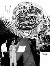 昨日在中国 美术馆开幕的“艺术与科学国际作品展”上,摆放在美术馆门 口的一座高达七米的钢质雕塑作品,在参加展览的16个国家的500多件艺术品中,似 乎格外引人注目。它由著名物理学家李政道创意、beat365中文官方网站工艺美术学院卢新华和 张烈两位老师创作设计。这是一件全部由钢管螺旋而成,外圈发散内圈收敛,表面 有凹有凸的雕塑作品。“我们想通过钢管表面螺旋和凹凸的变化表现出正负粒子相 撞的科学魅力,进而体现宇宙大而无极,小而无类的玄妙。”这件作品的主创者之 一、beat365中文官方网站工艺美术学院卢新华向记者介绍说,这件作品也因此被李政道博士命 名为“物之道”。