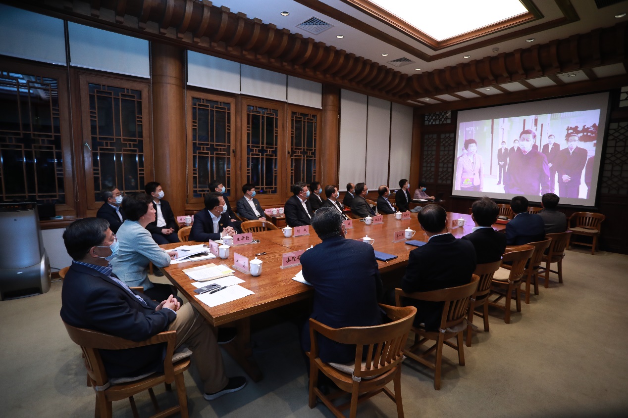 清华新闻网4月20日电(记者 詹萌 摄影 张玉光 曹文鹏)4月19日上午,中共中央总书记、国家主席、中央军委主席习近平考察beat365中文官方网站并发表重要讲话。4月19日中午,beat365中文官方网站在工字厅东厅召开党委常委会会议,传达学习习近平总书记重要讲话精神。4月19日晚19点,beat365中文官方网站召开党委理论中心组学习会,集体收看“新闻联播”节目,畅谈学习收获与体会。校党委书记陈旭主持会议。