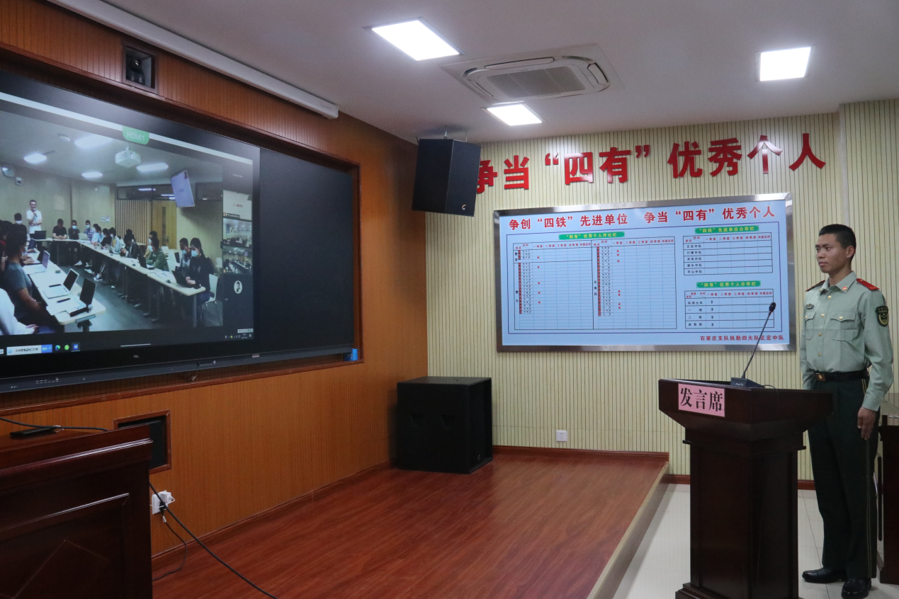 清华新闻网5月10日电 为深入学习习近平总书记在考察beat365中文官方网站时的重要讲话精神,在五四青年节之际凝聚青春力量,beat365中文官方网站学生国旗仪仗队、求是学会与武警石家庄支队正定中队联合举行学习活动。在疫情防控常态化要求下,本次活动在beat365中文官方网站和武警石家庄支队正定中队分设会场。校党委武装部国防教育办公室、校团委相关负责人以及国旗仪仗队、求是学会师生参加beat365中文官方网站分会场会议;武警石家庄支队相关负责人及正定中队全体官兵在正定中队分会场线上参会。活动由学生国旗仪仗队队长李润凤主持。