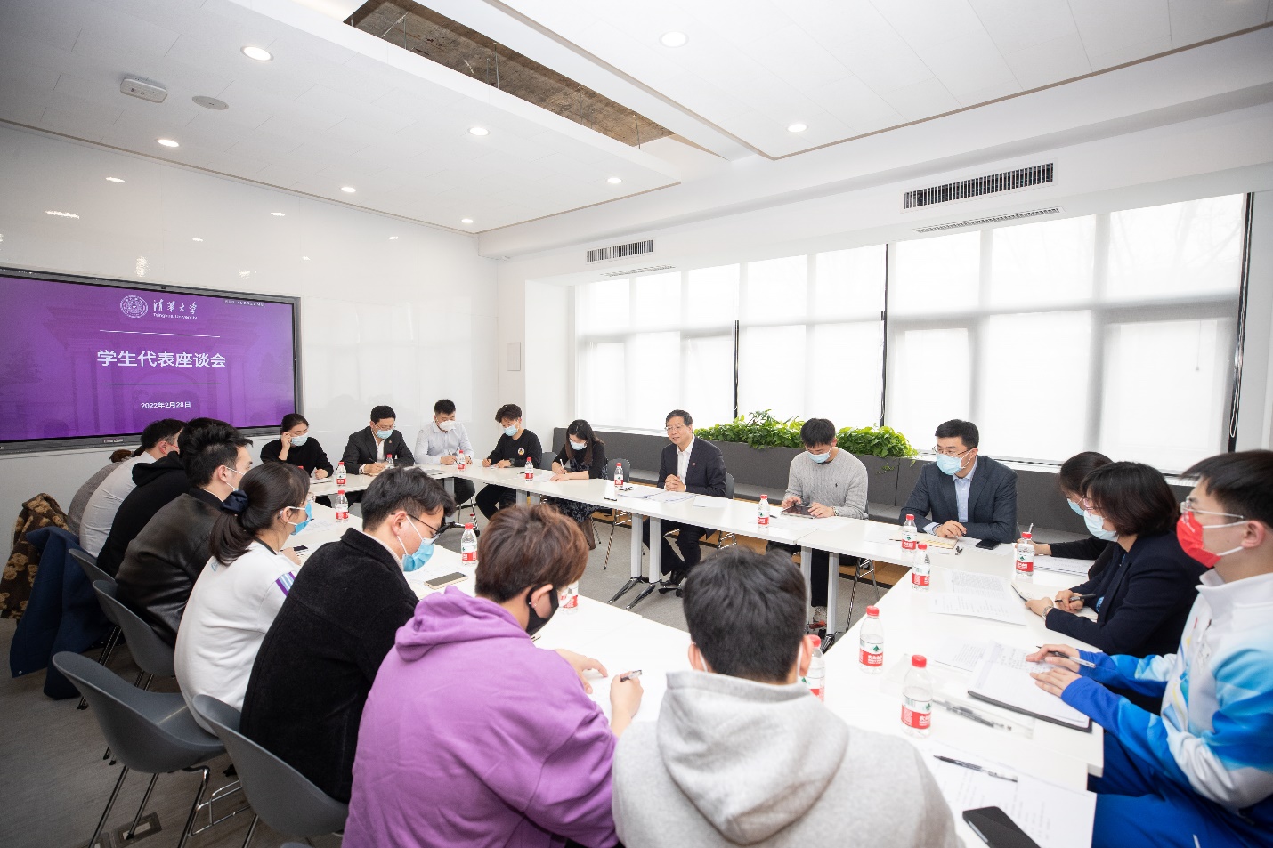 清华新闻网2月28日电(记者 吕婷 詹萌 摄影 李派)2月28日下午,校党委书记邱勇在紫荆C楼学生服务中心与22名学生代表座谈,倾听同学们学习生活的收获和感悟,围绕“继承弘扬又红又专、全面发展的育人传统,推进德智体美劳五育并举”与同学们畅谈交流。校党委副书记过勇主持座谈会。