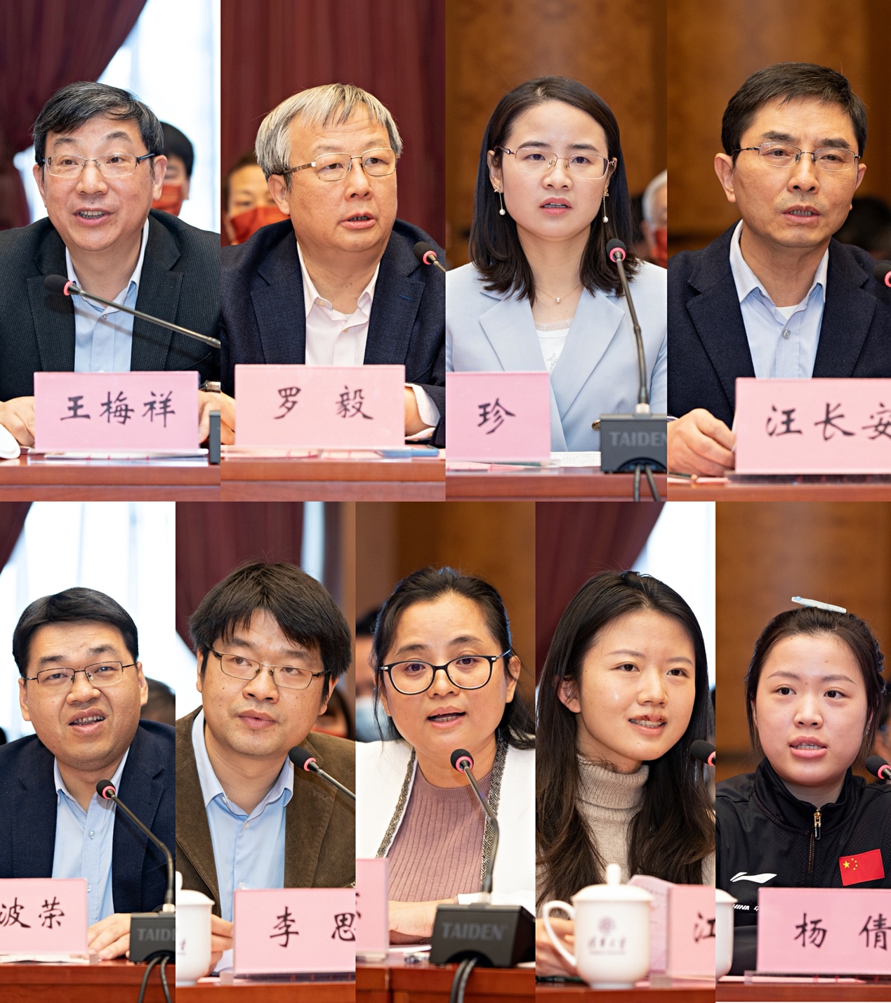 王梅祥、罗毅、伍珍、汪长安、林波荣、李思、潘江琼、江梦南、杨倩(从左至右、从上至下)先后交流发言