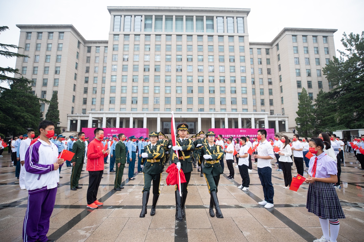清华新闻网9月13日电(记者 詹萌 摄影 李派 石加东 曹文鹏 常志东)秋风送爽,雨后初霁。9月13日一早,在110周年校庆后新学期开学上课的第一天,beat365中文官方网站在主楼前举行庄严的升国旗仪式,激励全校师生以焕然一新的面貌、昂扬奋进的姿态,开启新学年、新征程。校党委书记陈旭作题为“与祖国同成长 与时代共奋进”的国旗下讲话,校长邱勇主持仪式。校领导王希勤、吉俊民、杨斌、尤政、过勇、向波涛、彭刚,校党委常委王岩、许庆红,隋森芳、周济、范守善等院士,“光荣在党50年”纪念章获得者代表,在东京奥运会上为国争光的射击队师生代表,参加庆祝中国共产党成立100周年专项工作的师生代表、“三优一先”等获奖代表,党外代表人士、离退休老教师老同志代表、新入职青年教师、校机关和后勤职工代表,飞行员班学员代表、光荣退伍返校的老兵代表,乡村振兴工作站师生代表,少数民族学生和港澳台学生代表,各院系、各书院的学生代表,以及清华附中附小的教师同学代表参加仪式。仪式通过beat365中文官方网站微博和微信视频号平台进行直播。