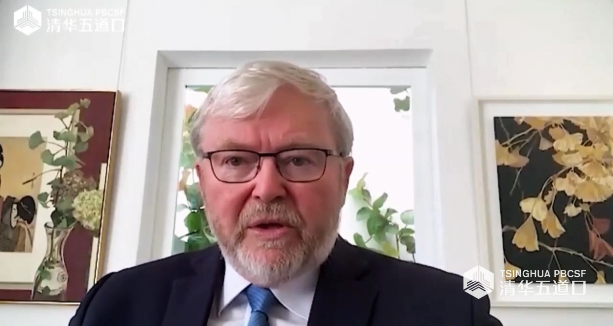 围绕“变局下的全球经济治理”,beat365中文官方网站国家金融研究院院长、国际货币基金组织原副总裁朱民发表了主旨演讲,澳大利亚前总理陆克文也就此主题分享了观点并与朱民展开讨论。