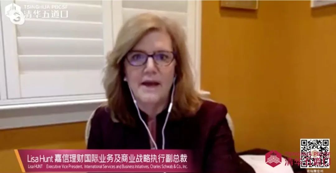 本场分论坛中,美国嘉信理财国际事务及商业战略执行副总裁丽莎·亨特(Lisa Hunt)通过海外连线的方式参与了主题演讲环节。她指出,中国对金融市场的开放带来了很多机遇,这对中国的投资者来说是积极的利好信号,意味着中国的投资者可以获取来自全球的、更多元的产品和服务。除此以外,市场的开放带来了更多的教育机会,可以提升人们的金融素养,也可以加强人们对财务规划的意识。丽莎·亨特认为,在金融行业不断开放的背景下,数字金融服务将助力加速提升中国财富人群的金融素养。