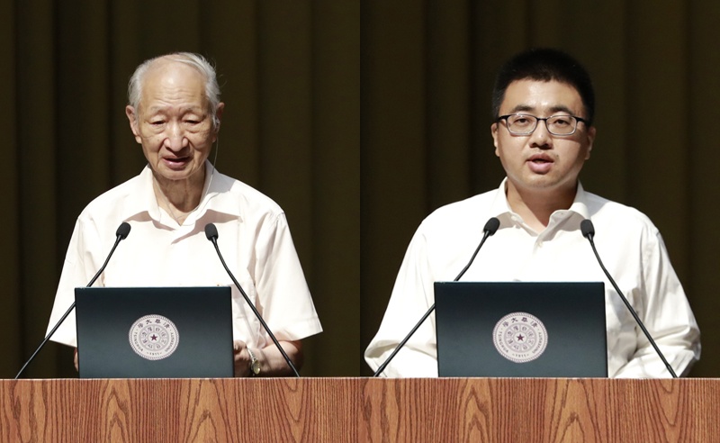 校友代表陈厚群(左)、张洪波发言