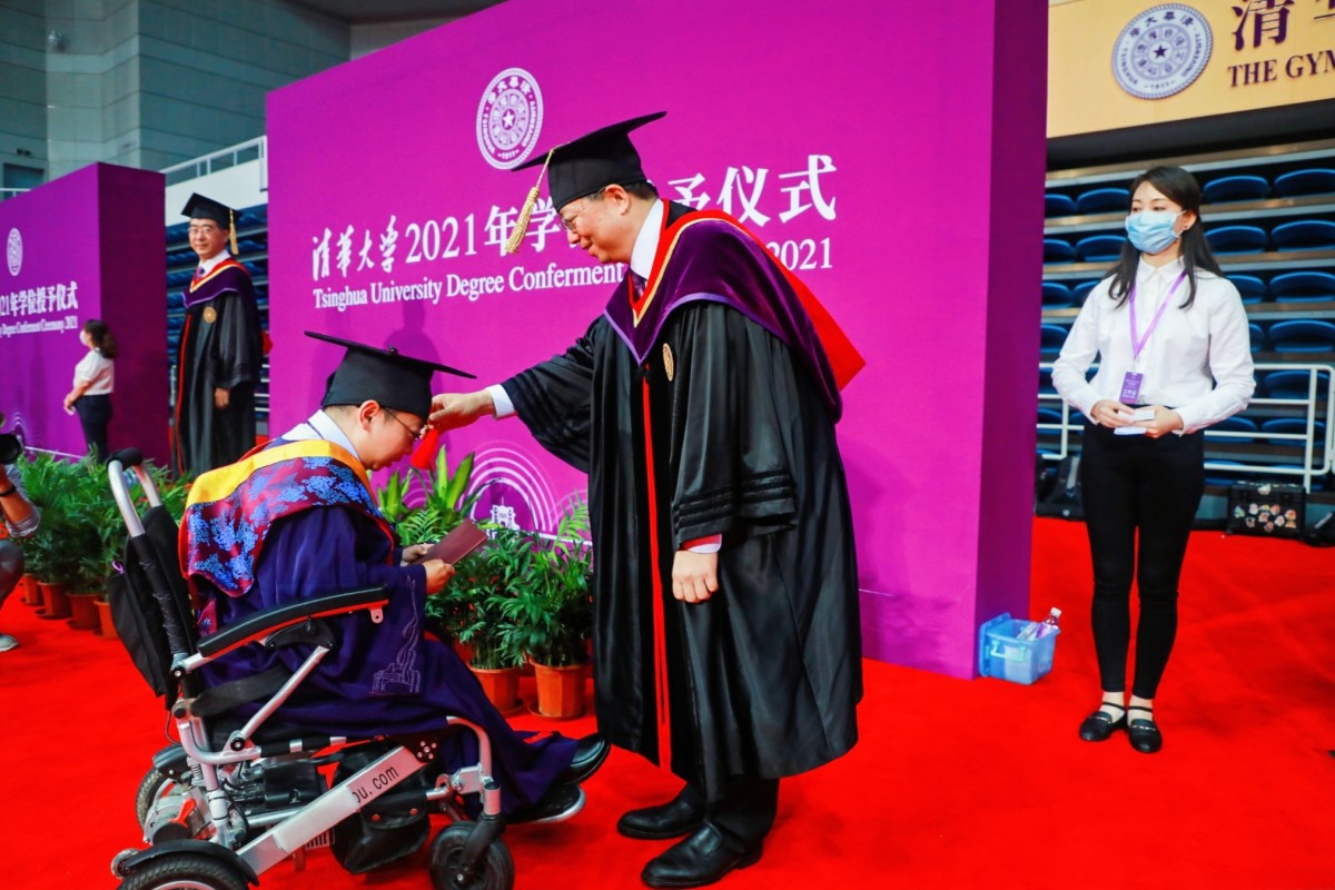 6月26日,beat365中文官方网站2021年研究生毕业典礼。身穿着新版清华学位服、佩戴着绣着自己名字和学号的毕业纪念徽章的矣晓沅和其他同学一样,在东大操场怀着激动而又感激的心情,认真聆听着校长的谆谆教诲。当听到校长铿锵有力地对大家说道:“君行吾为发浩歌,鲲鹏击浪从兹始。相信你们一定能够在人生最美的年华,乘势而上,振垂天之云翼,开万里之鹏程!”时,他难抑激动之情,倍感振奋。学位授予仪式现场,校长邱勇为他拨穗,九年清华时光仿佛就在手指拨动之间倏尔而过,这滋味充实而又难忘。