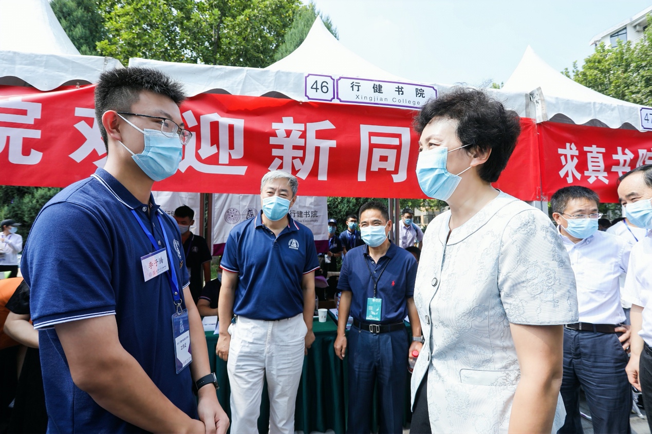 陈旭与迎新志愿者亲切交谈