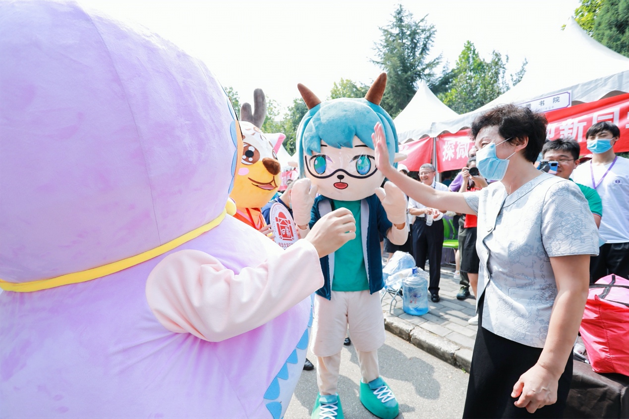 陈旭与“吉祥物”们打招呼