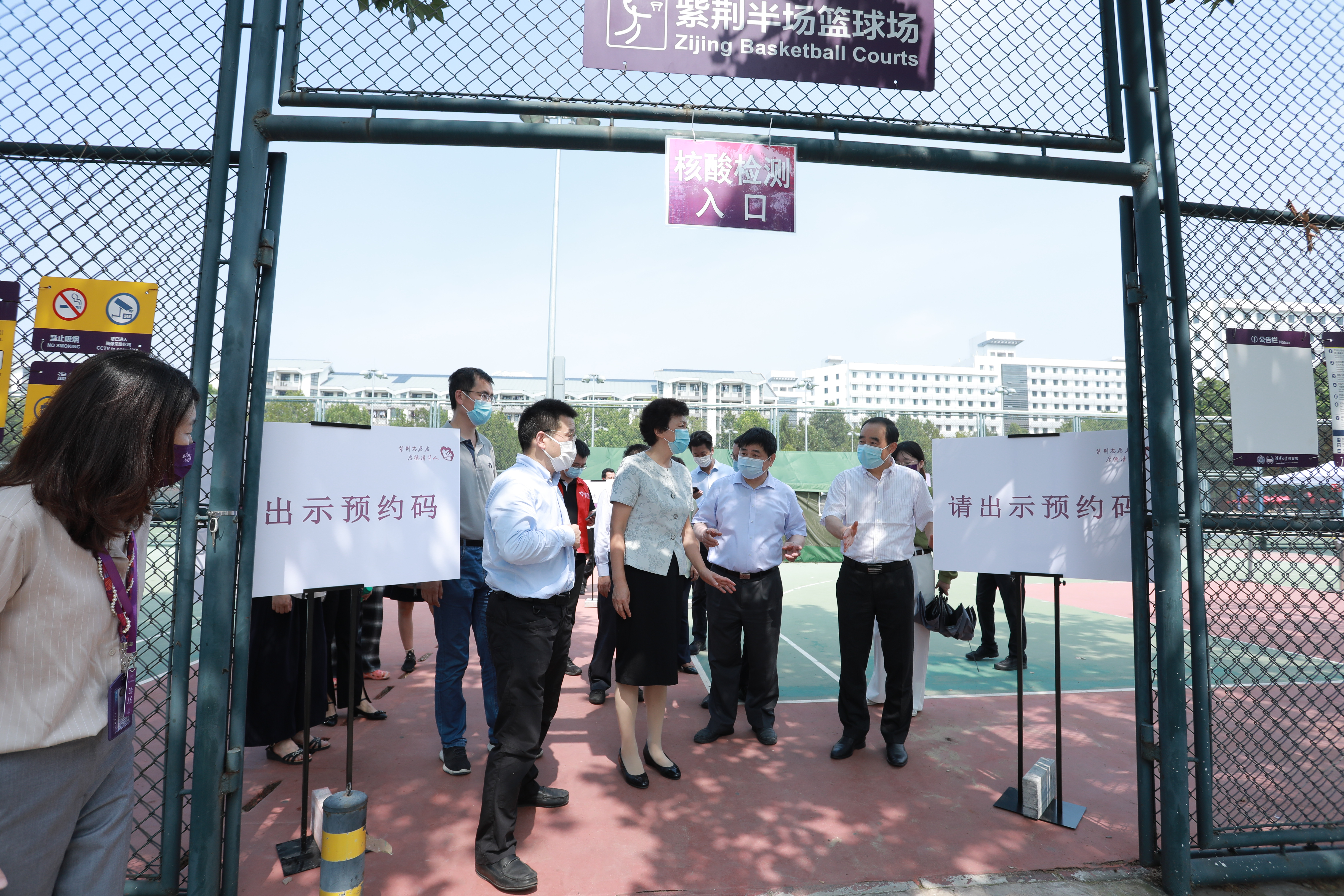 沿着紫荆网球场南侧道路向西步行,陈旭一行来到了位于网球场东侧篮球场的“新生行李领取处”,检查新生行李寄送领取安排。除了生活必需品和衣物这些“常规行李”,在这里,你还能看到被包裹得严严实实的自行车和厚厚的床垫。这些来自天南海北的包裹,满载着亲人们的牵挂和同学们的憧憬,也将见证它们的主人在这座园子里开启一段机遇与挑战并存的全新旅程。