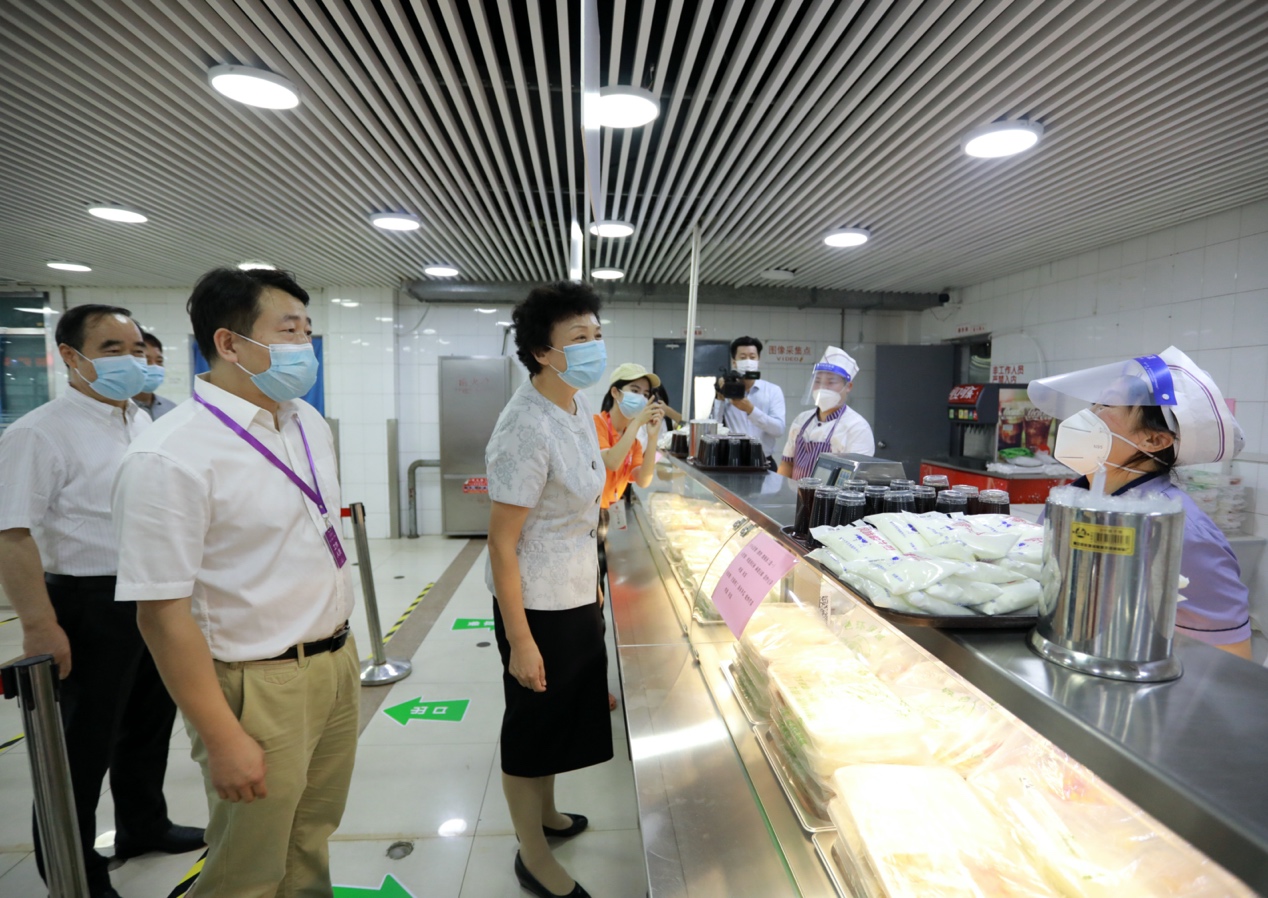 随后,陈旭一行步行至芝兰园餐厅检查疫情防控工作和午餐准备情况。今年新生集中报到期间,为切实做好疫情防控和各个餐厅间的人员分流,学校将芝兰园和丁香园餐厅作为新生指定购餐地点。芝兰园为新同学们准备了不同规格的餐品,并开设了四个通道引导新生快速选餐购餐后打包带回宿舍食用。