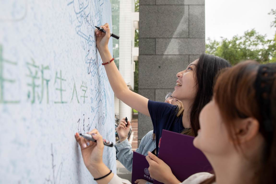 校园主干道两侧迎风飘扬的道旗,温暖贴心的指示牌、条幅和展板,处处洋溢着热烈的迎新氛围。考虑到天气原因,为了更好地做好迎新物资保障工作,很多工作人员彻夜不眠。天光微明时,各院系迎新师生们就已经忙碌起来,“清华紫”校园卡、院系文化衫、研究生新生手册……实用有趣的开学大礼包等待新同学开启。