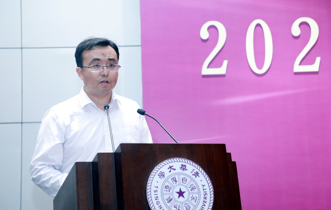 国歌唱毕,张涛代表大类代管院系——自动化系与经管学院,对1字班本科新生表示热烈欢迎,并介绍了大类的学科构成、师资队伍、培养目标等基本情况。张涛表示,2021年是充满挑战与机遇的一年,选择了清华,就意味着选择了责任与挑战。他希望同学们在清华园里勇于面对自立的挑战、课程的挑战和全面发展的挑战,成就完美的大学生活。他激励同学们秉承“爱国奉献、追求卓越”的清华精神,树立远大理想,不懈奋斗、砥砺前行,成为一名堪当大任、与新时代同向同行的中国青年。