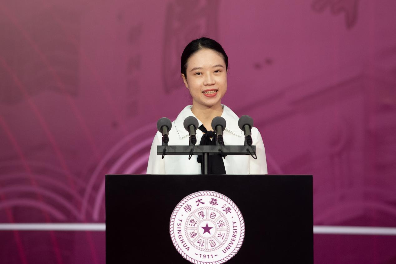 地学系谭畅作为新生代表发言。她说,我们在最好的年纪来到了清华,而清华同样赋予了我们无限的可能。笃学力行,我们要苦练本领,汲取前行力量。突破边际,我们当勇于探索,尝试多种可能。脚踏实地,我们更应积极进取,不负青春韶华。