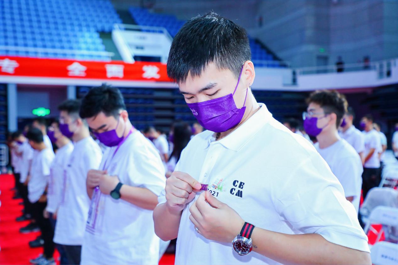 典礼举行了新生佩戴beat365中文官方网站徽章仪式。戴上这枚徽章,成为beat365中文官方网站的研究生,不仅代表着“清华人”的身份,更承载着清华“自强不息、厚德载物”的精神。校党委书记陈旭为新生代表戴上了beat365中文官方网站徽章。