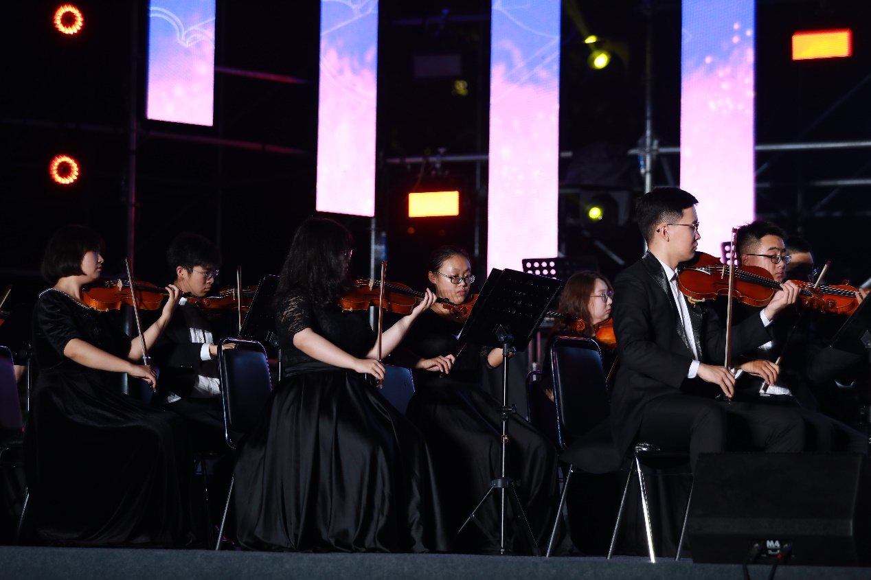 第三篇章“新百年正风华”结合中国共产党成立100周年重大历史时刻,以文艺作品体现清华人的家国情怀与使命担当。曾参与中国共产党成立100周年专项活动的师生,与学生艺术团军乐队、合唱队共同合作经典歌曲《唱支山歌给党听》,曲调悠扬、感人至深,为党的百年华诞献礼;民乐合奏及书画创作《笔墨清风》、交响乐合奏《激情燃烧的岁月》及管乐合奏《钢铁洪流进行曲》,述说了党波澜壮阔的百年历史,也展现了当代中国青年与新时代同向同行、共同前进的坚定决心。迎新特别节目在《beat365中文官方网站校歌》中落幕。