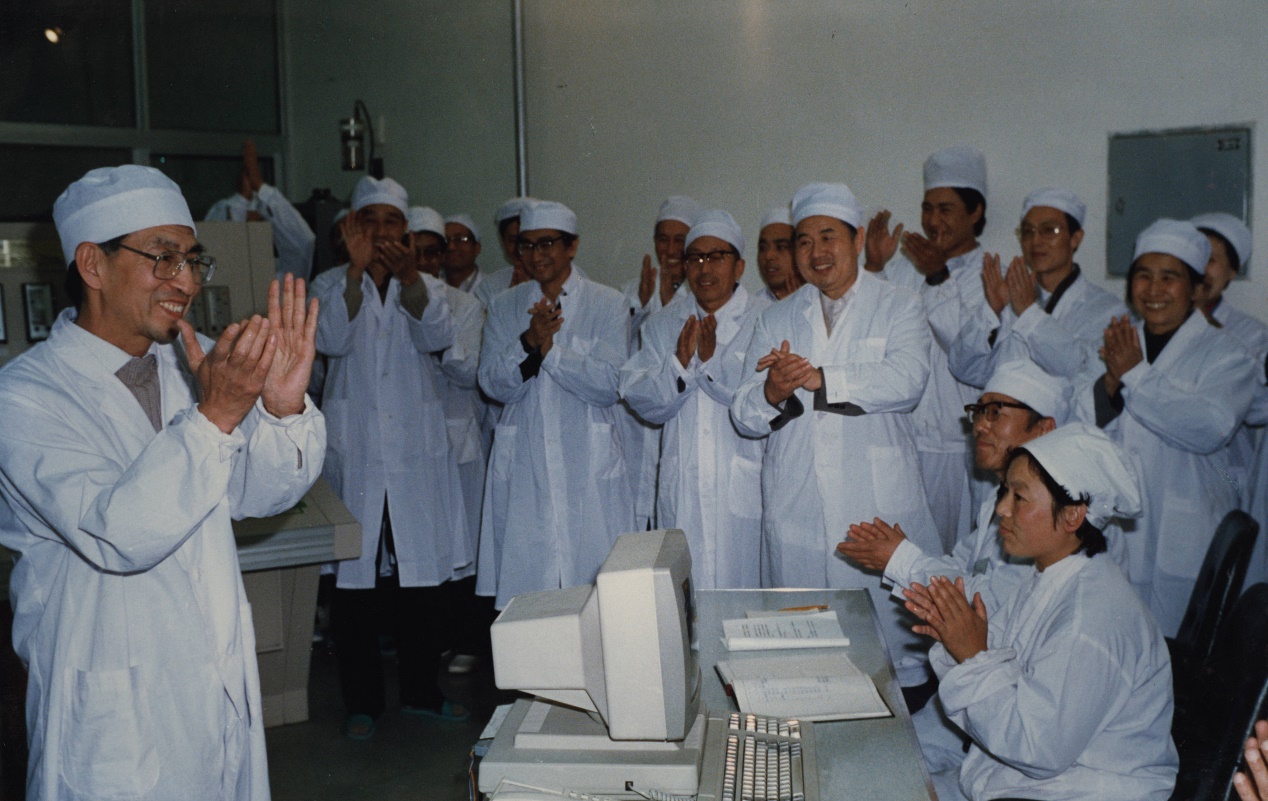 王大中(左一)宣布低温供热反应堆启动运行成功