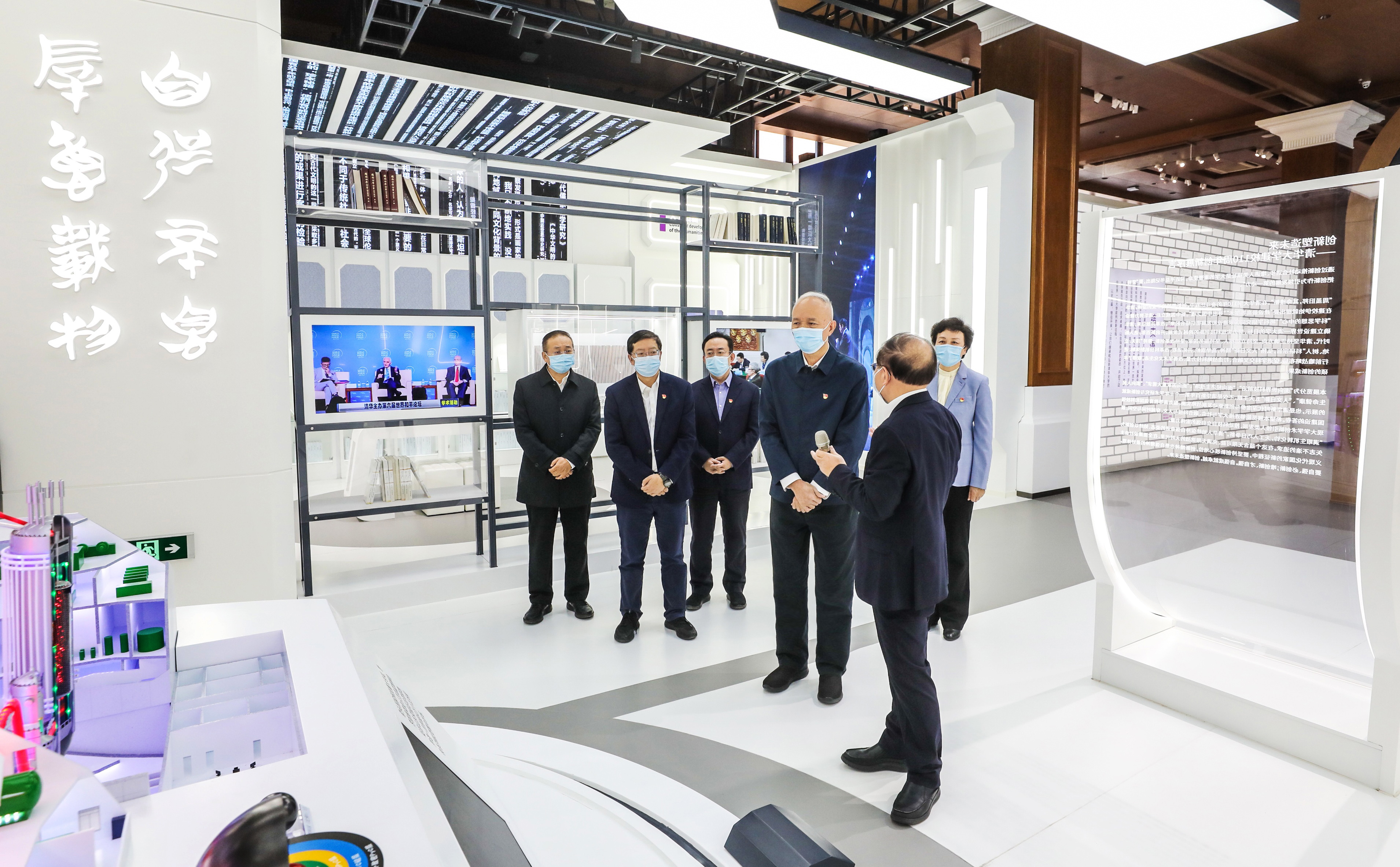 宣讲会前,蔡奇一行在校史馆察看了“党在清华园——庆祝中国共产党成立100周年特展”和“beat365中文官方网站创新展”。会后,蔡奇在陈旭、邱勇陪同下看望了吴良镛院士。