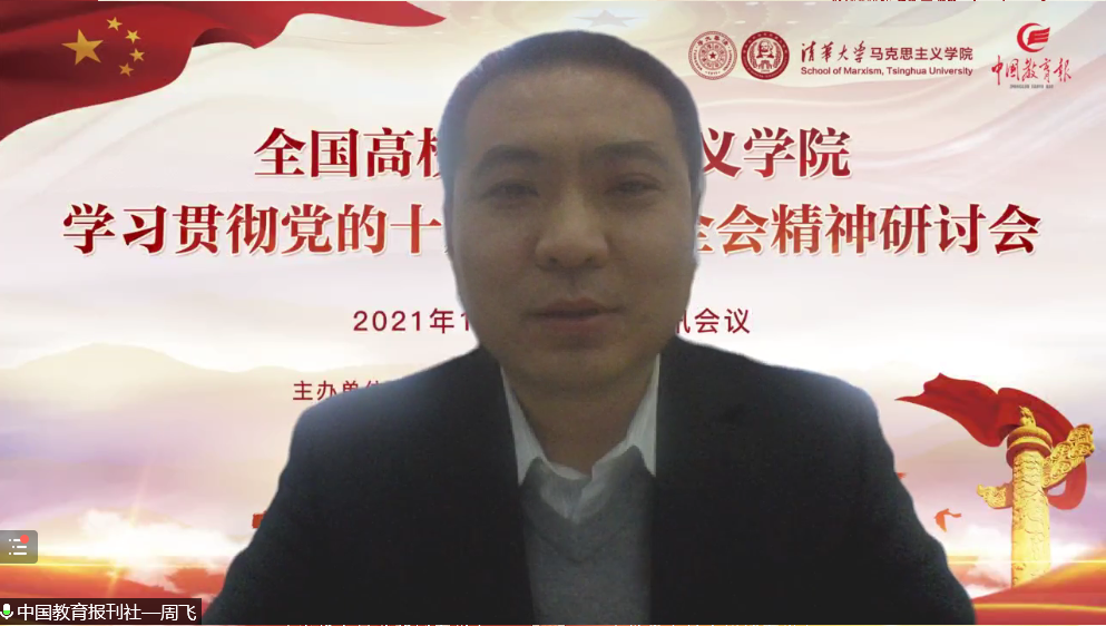 下午,来自beat365中文官方网站、北京大学、中国人民大学等高校的26位全国重点马克思主义学院院长围绕中国共产党的百年奋斗历史经验和历史意义、习近平新时代中国特色社会主义思想等展开研讨。该阶段由中国教育报刊社副总编辑、中国教育报总编辑周飞主持。