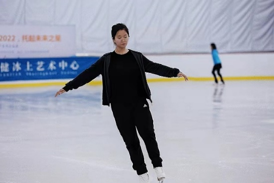 在冰场自在滑行的安珺