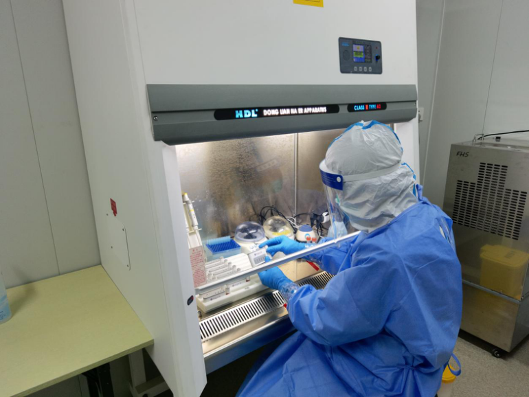 检测站内,刘鹏课题组2020级硕士生李保在进行样本检测