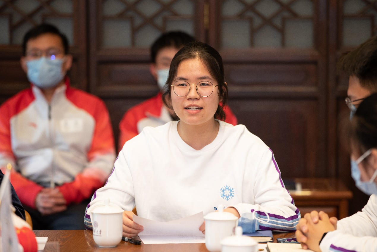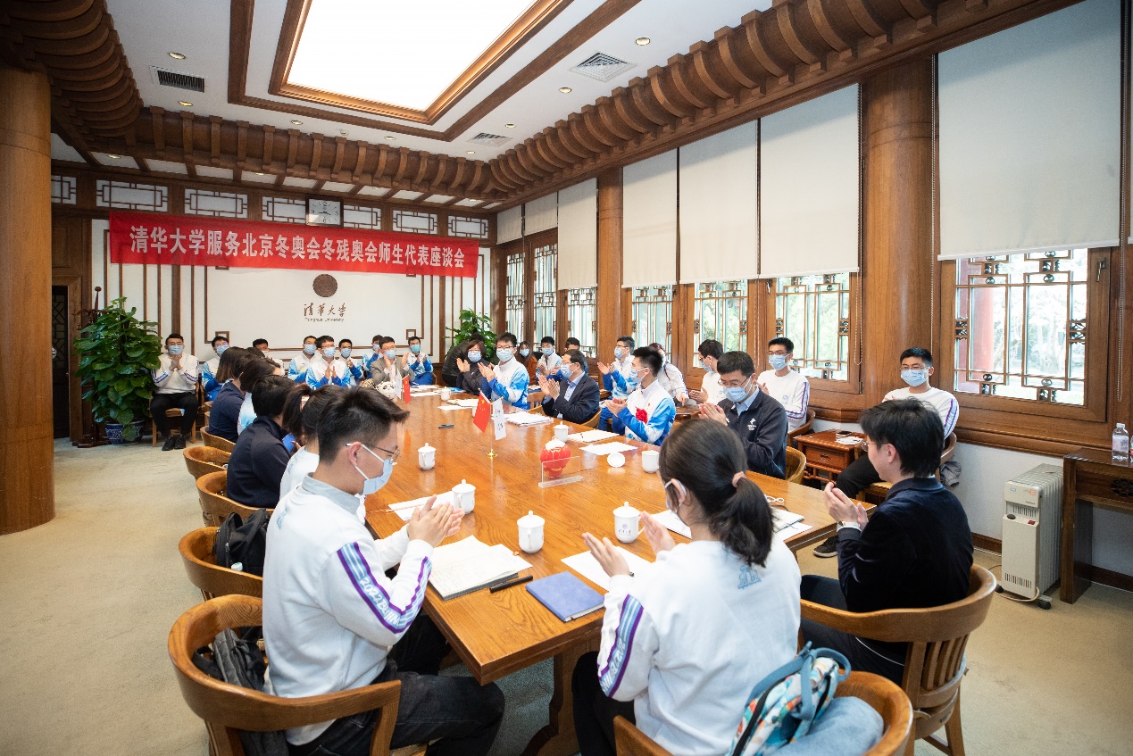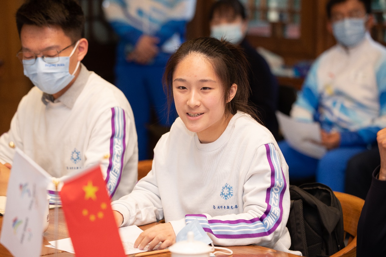 学生部、研工部、团委等学校有关部门负责人,以及37位冬奥志愿者师生代表参加座谈会。