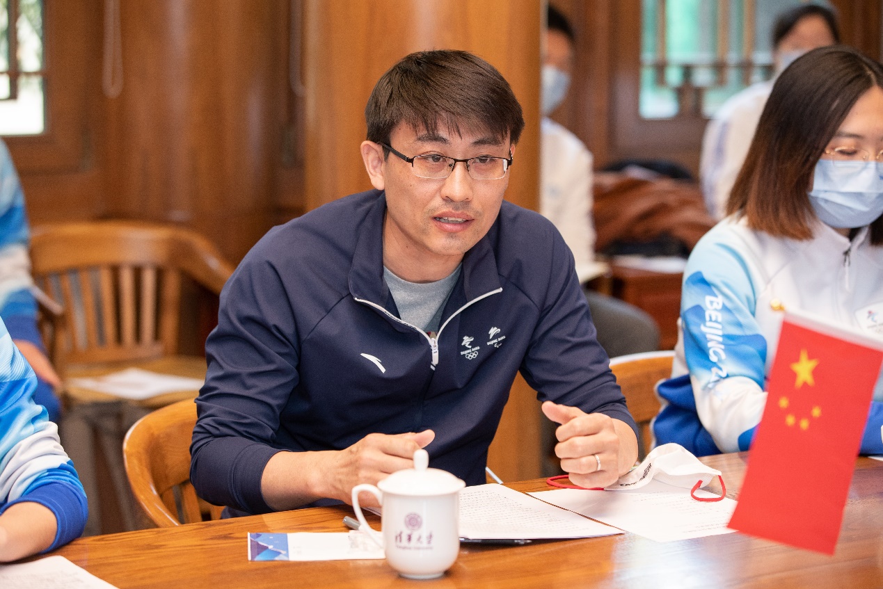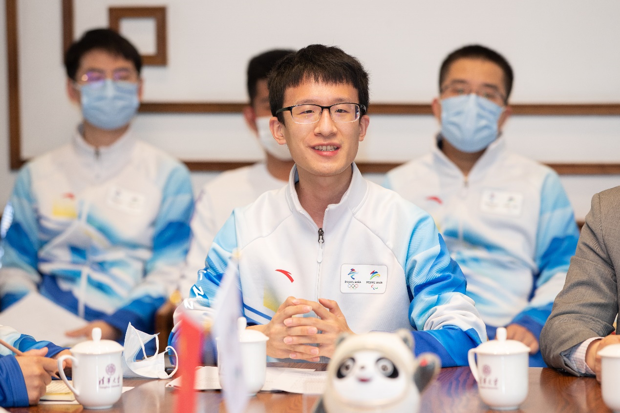 反兴奋剂组志愿者代表、自动化系2020级硕士生牛家赫介绍了延庆赛区反兴奋剂组72名清华师生志愿者的服务经历。为了保障每一块干干净净的奖牌,延庆赛区反兴奋剂组志愿者克服闭环时间长、疫情防控风险高、工作环境艰苦、工作强度大等多重困难,主动奉献、毫不懈怠,并组建临时党支部,建立党员先锋模范岗,充分发挥基层党组织战斗堡垒的作用,圆满完成了超700人次的兴奋剂检查陪护任务。