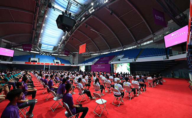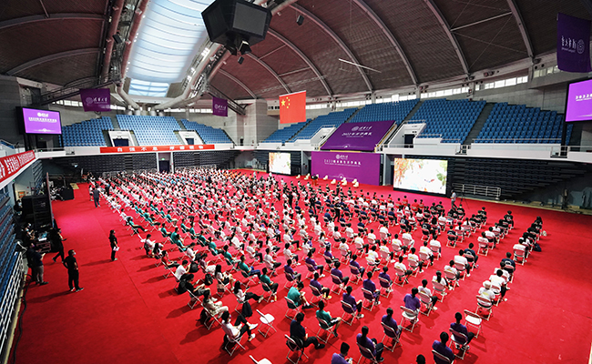 鉴于目前的疫情防控形势,本次开学典礼采用线上线下结合的方式举行,线下设置了24个会场,并通过雨课堂平台同步双语直播。近500名新生代表在综合体育馆主会场参加典礼,3000余名新生在分会场观看现场直播。