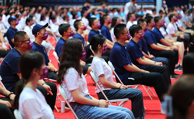 受疫情影响,未能到场的新生和新生亲友通过网络直播参加典礼。部分中学的校长和教师代表、学校全体新入职教师特别受邀线上参加典礼,共同见证这一美好时刻。