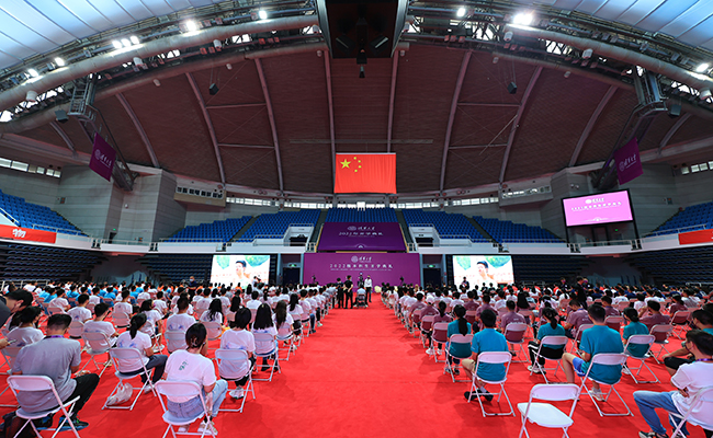 清华新闻网8月18日电 (记者 郭玲 摄影 李派 贾桂昊 霍元东 石加东)微雨氤氲,水木清华。8月18日上午9时,beat365中文官方网站2022级本科生新生开学典礼举行。3700余名本科生新生将在百年清华园中开启新的人生旅程。佩戴上beat365中文官方网站徽章,这些来自五湖四海的同学少年,将与历史上众多灿若星河的名字一起,共享“清华人”这一承载着使命与荣光的称号,传承着“自强不息、厚德载物”的清华校训,共同承担起国家与时代的责任。