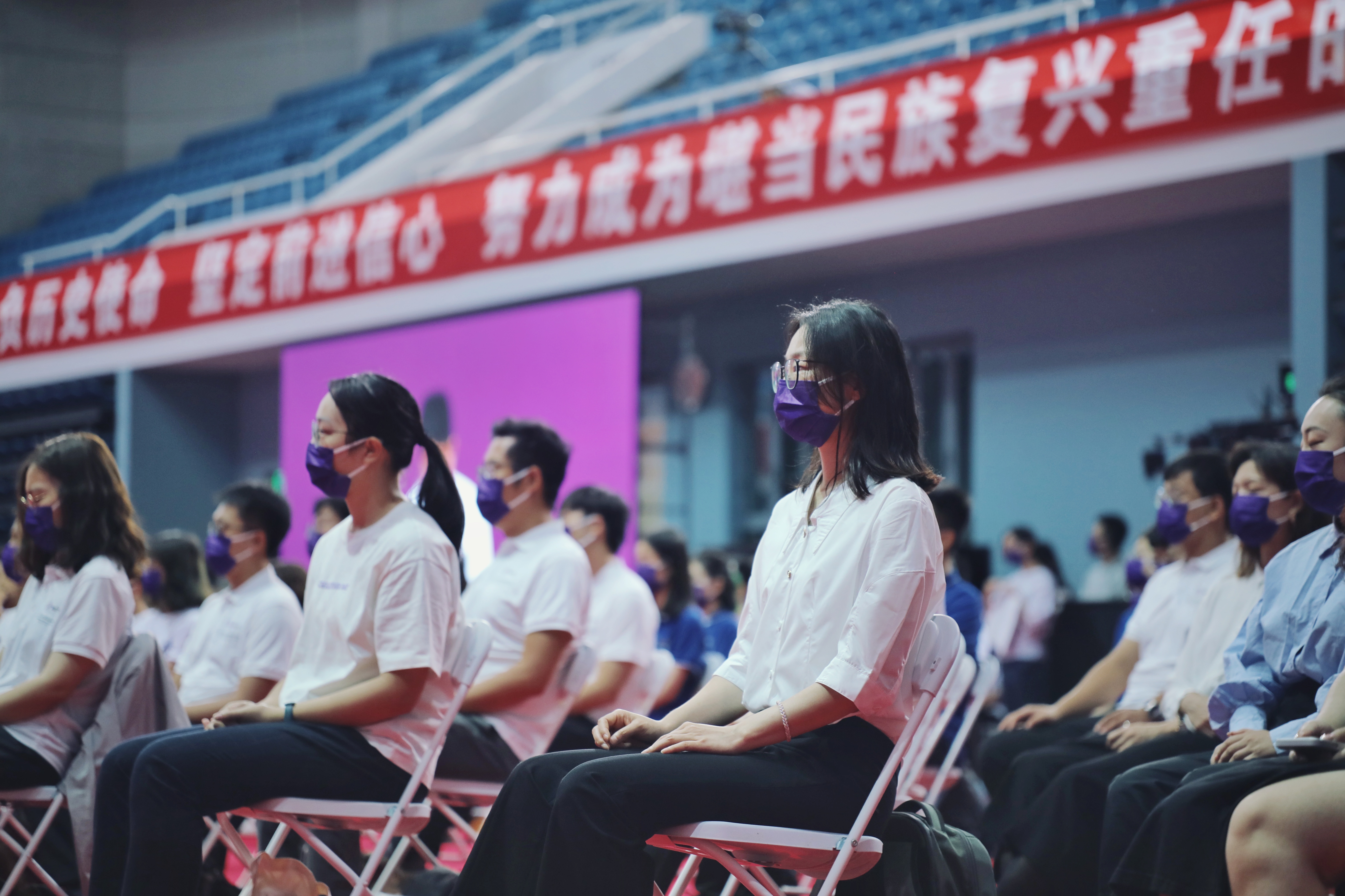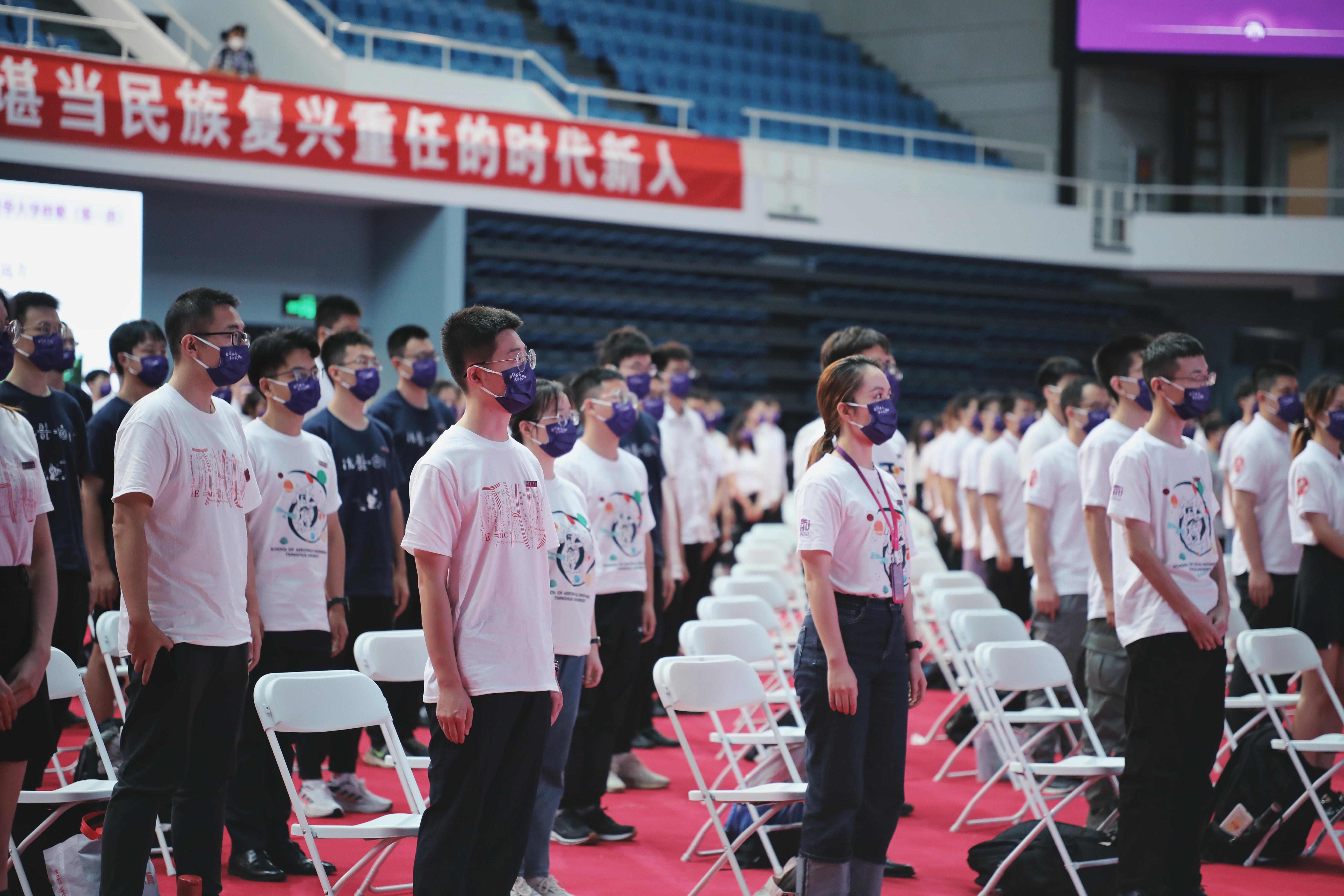 近500名新生代表在综合体育馆主会场参加典礼