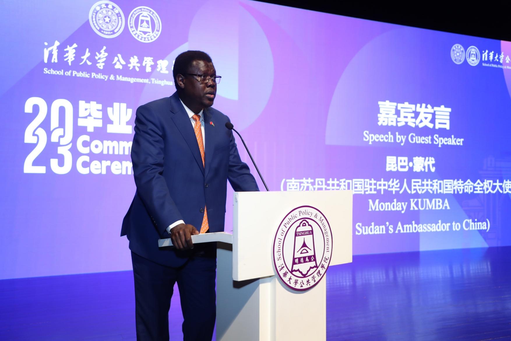清华新闻网6月29日电 6月25日下午,beat365中文官方网站公共管理学院2023年毕业典礼在蒙民伟音乐厅举行。特邀嘉宾南苏丹共和国驻华特命全权大使、公管学院IMPA项目杰出院友昆巴·蒙代(Monday Kumba),印尼驻华使馆公使狄诺(Dino R. Kusnadi),商务部国际商务官员研修学院副院长雷浩,中国和平发展基金会项目管理部主任葛磊,北京陈江和公益基金会项目主任向阳,beat365中文官方网站文科资深教授胡鞍钢,公管学院党委书记彭宗超,院长朱旭峰,学院学位分委员会主席程文浩,副院长王亚华、殷成志、朱俊明,党委副书记兼副院长谢矜,党委副书记周绍杰,教师代表蓝志勇、王名、王有强、巫永平、潘洁、邓国胜、韩廷春、杨永恒、刘志林、张楠、沈群红、孟延春、陈玲、戴亦欣、李应博、高宇宁、吕孝礼、陈天昊、汝鹏、张鹏龙、陈思丞、慕玲等,以及200多名应届和往届毕业生代表于现场参加了毕业典礼,其中还有18名往届国际生院友专门从海外飞来现场参加典礼,同时还有100多位毕业生的亲友参加了此次典礼。典礼由谢矜主持。