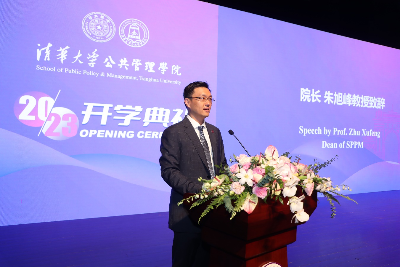 朱旭峰致辞时表示,当今世界处在充满挑战的时代,身为清华学子要更加勇敢地迎接时代召唤,引领时代发展。他对新生提出三点建议:一是“沉住气”,坚守内心信念,明确目标,规划路径,做好准备。二是“迈开脚”,锻炼自身本领,用双眼观察社会万象,用双脚丈量祖国大地,用双手记录时代变迁。三是“躬下身”,为社会解决问题,为人类贡献知识,为人民谋求福祉。不辜负时代厚望,在独善其身之后依然怀有兼济天下的梦想,勇敢推动中国式现代化发展。