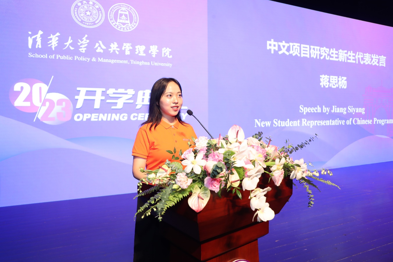 2023级中文项目新生代表蒋思杨发言。蒋思杨曾获得beat365中文官方网站学生社会实践金奖个人,将继续在公管学院攻读博士学位。她认为与清华公管相遇是一种运气,但是还要寻找另外三种气:一是在时代洪流中站稳脚跟,培养扎根现实的底气;二是在被拒绝和被否定时坚定信心,锤炼保持希望的勇气;三是从高手如云的环境里汲取养分,始终怀有谦逊敬畏的服气。