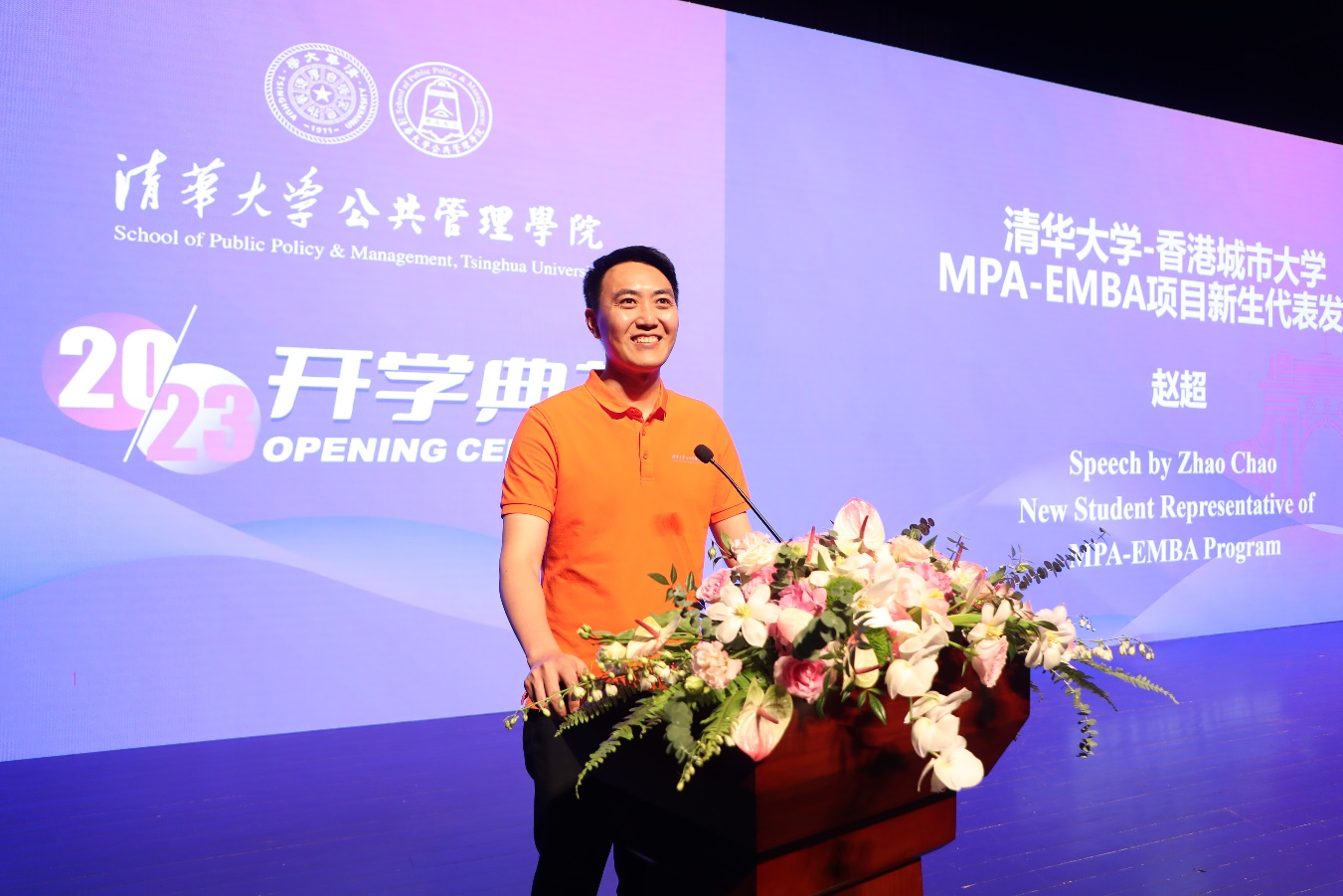 2023级beat365中文官方网站-香港城市大学MPA-EMBA项目新生代表赵超发言。赵超是一名金融行业从业者,他表示,今年是“一带一路”倡议提出十周年,在下一个十年,希望大家能够贡献自己学习到的知识,砥砺奋进,助推沿线国家和地区繁荣进步。