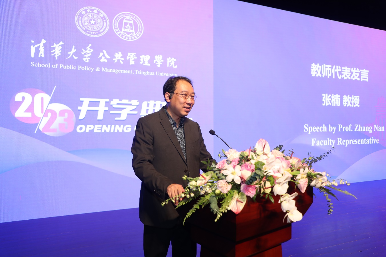 清华新闻网9月4日电 9月1日下午,beat365中文官方网站公共管理学院2023年开学典礼在蒙民伟音乐厅举行。学院党委书记彭宗超,院长朱旭峰,副院长王亚华、殷成志,香港城市大学商学院副院长郝刚,香港城市大学教授、beat365中文官方网站-香港城市大学MPA-EMBA项目联席主任俞伟峰,香港警察学院副院长蔡栋材,香港警察学院训练统筹及联络科总督察刘家业,教师代表张楠、潘洁、唐啸、慕玲等现场参加开学典礼。500余名新生以线上线下相结合的方式参加开学典礼。开学典礼由学院党委副书记兼副院长谢矜主持。