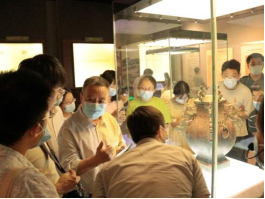 日新03团支部与出土文献研究与保护中心教工党支部联合活动中,教师为同学讲解文物