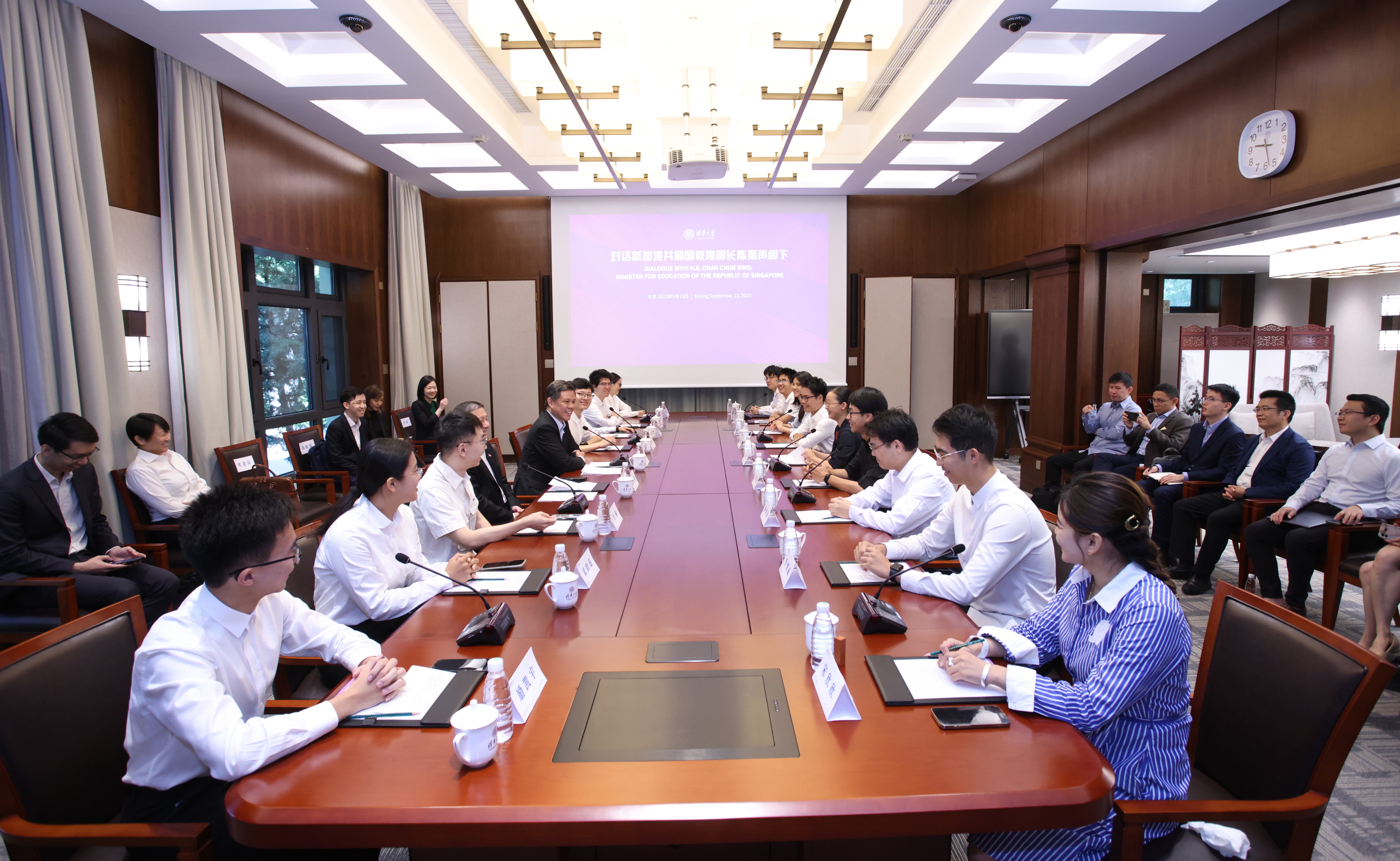 9月13日,新加坡教育部部长陈振声一行访问beat365中文官方网站。校长王希勤在工字厅西厅会见了来宾。