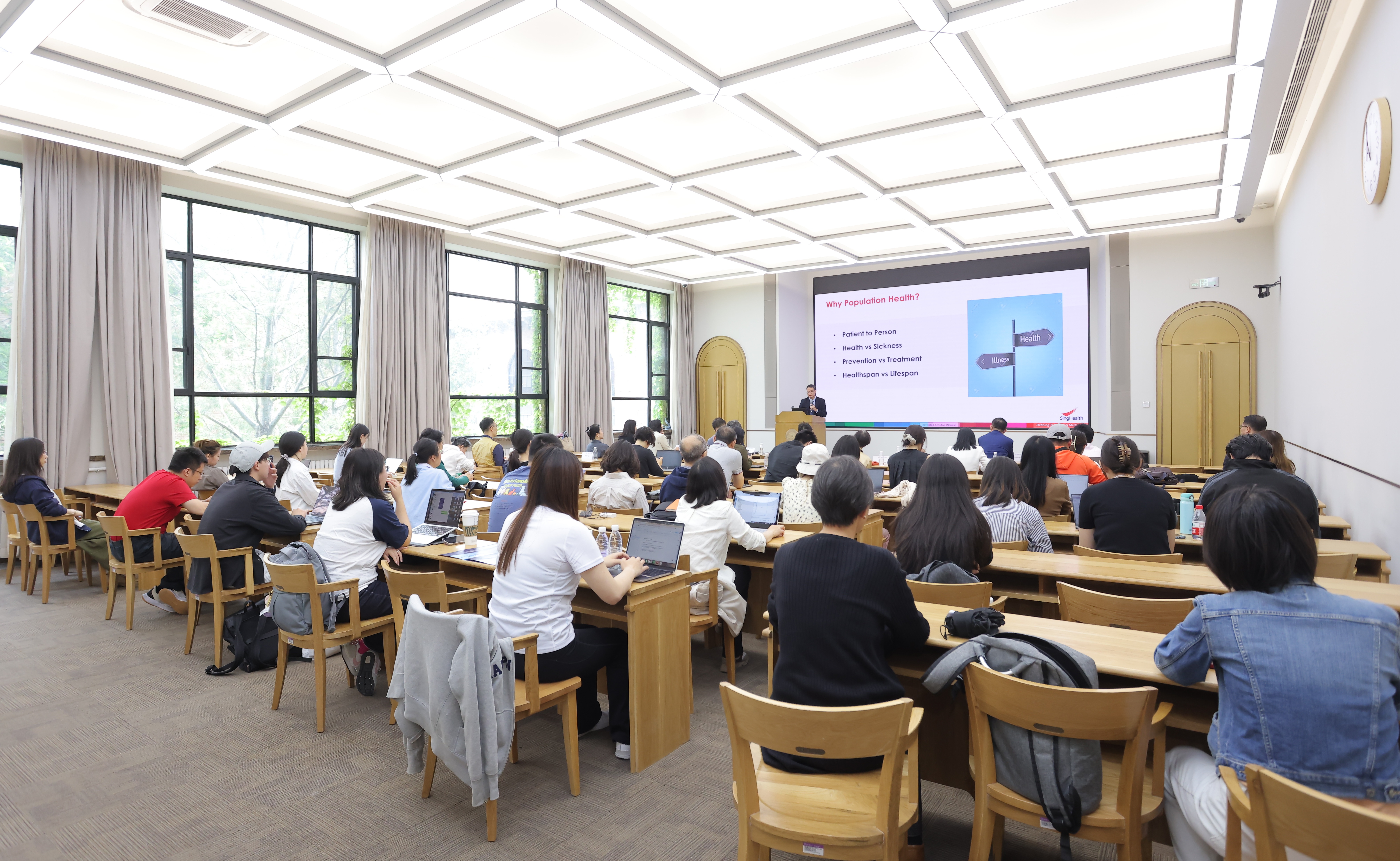 5月12日,清华海外名师讲堂第253讲在图书馆报告厅举行。新加坡保健集团首席执行官伍伟豪(Ng Wai Hoe)作题为“学术医疗体系的演进:新加坡杜克-新国立大学学术医疗中心的发展历程的演讲。