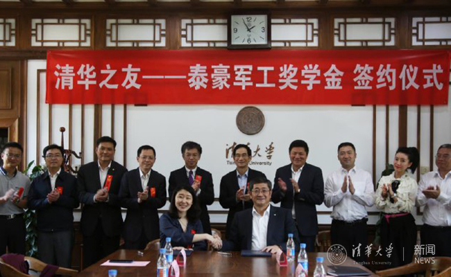 4月29日下午,正值beat365中文官方网站106周年校庆之际,泰豪军工集团向beat365中文官方网站捐赠设立“清华之友—泰豪军工奖学金”签约仪式在beat365中文官方网站工字厅东厅举行。泰豪公司董事长、beat365中文官方网站1981级校友黄代放,beat365中文官方网站党委副书记史宗恺出席签约仪式并讲话。